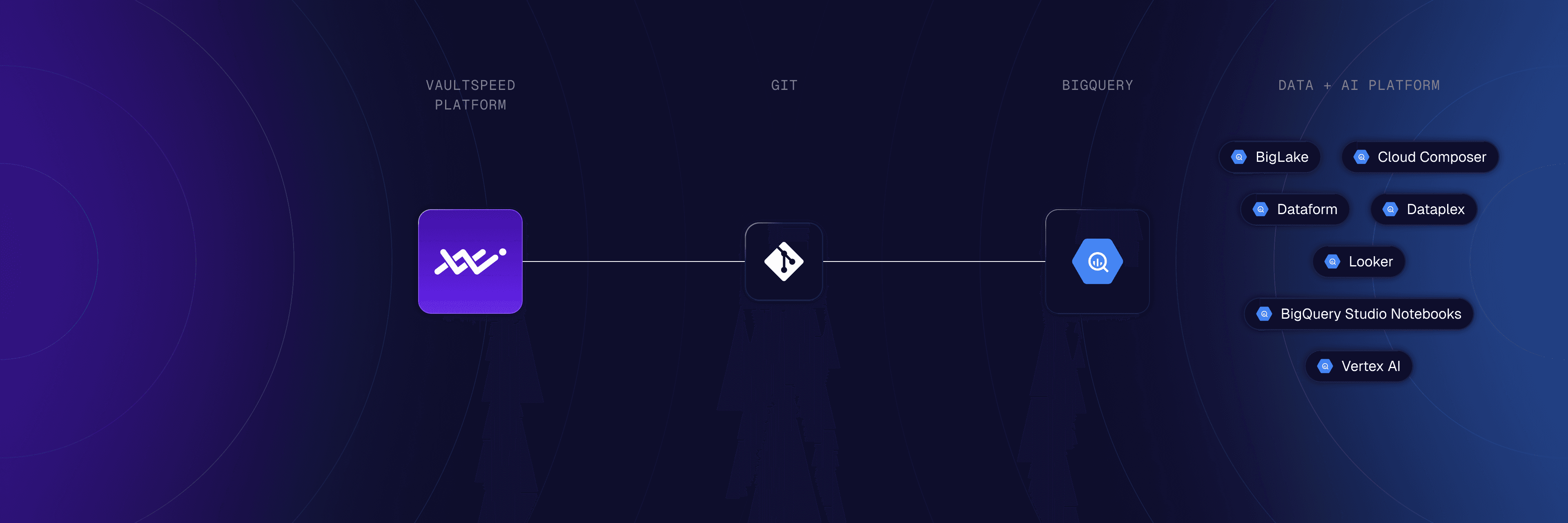 VaultSpeed connects business intent to execution through active metadata. It produces BigQuery-native transformation logic while keeping models, lineage, and change history governed and accessible.